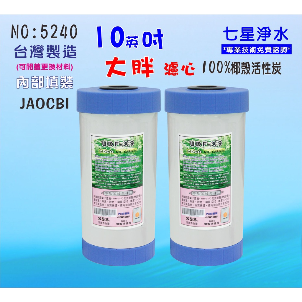 【七星淨水】10英吋大胖活性炭濾心淨水器.除泥除雜質除氯.水塔過濾器地下水.養殖.貨號:5240