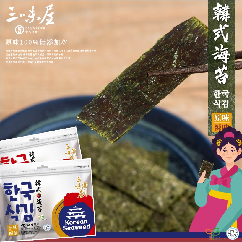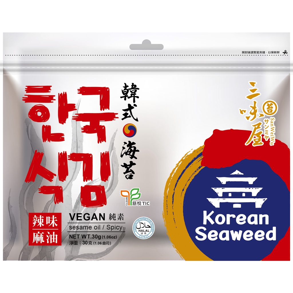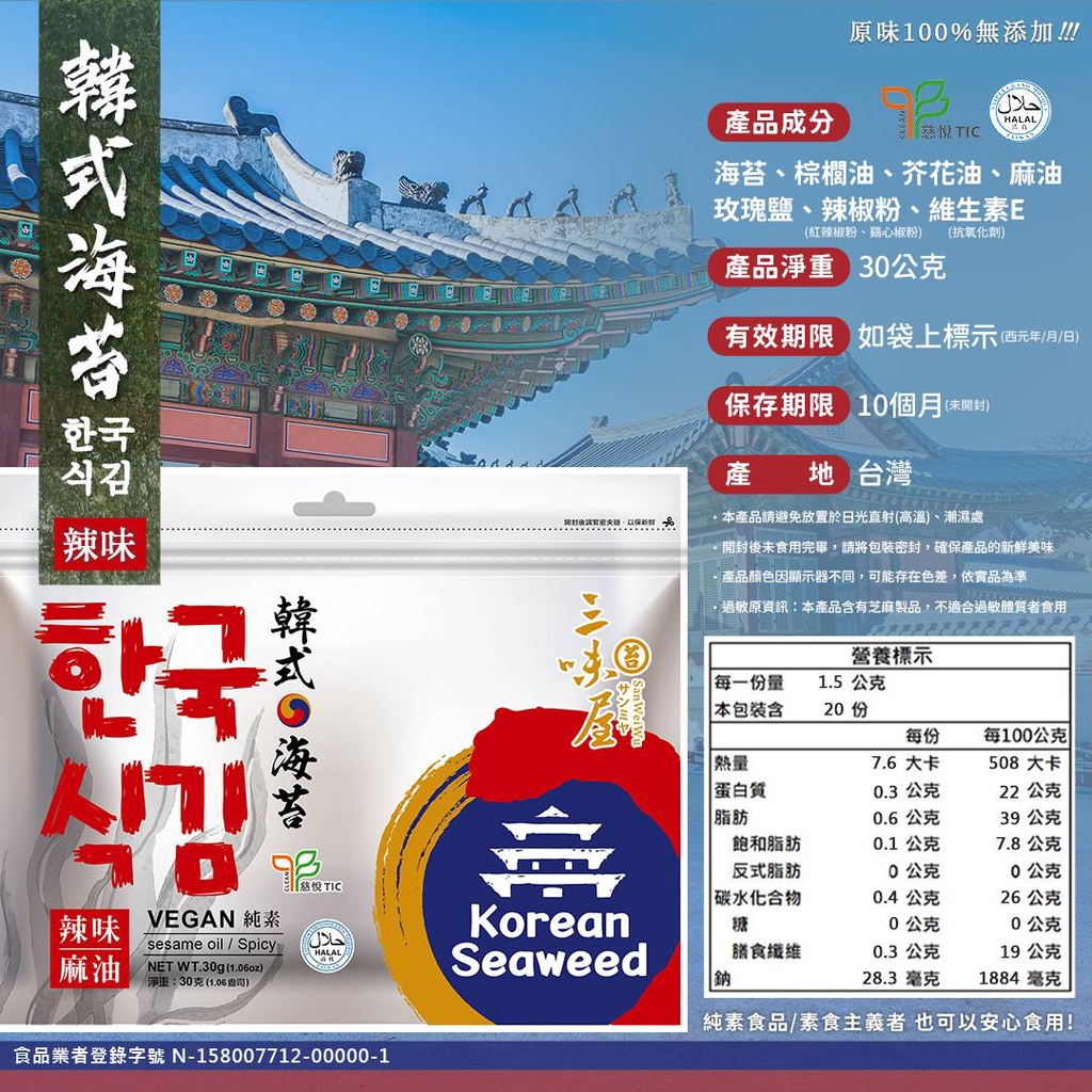 【三味屋】韓式麻油海苔辣味30g |雙潔淨標章(clean label) 清真(HALAL)認証