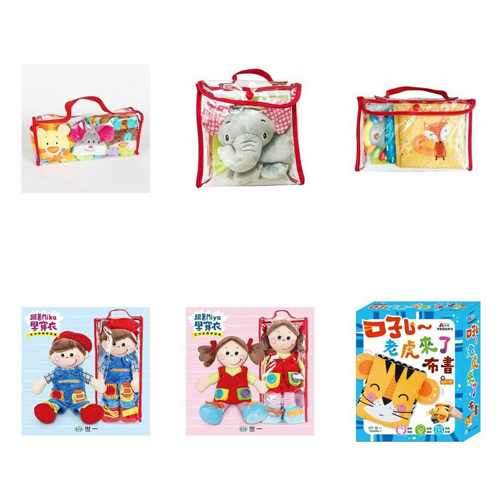 【世一】三合一Baby感官動物跟著Mika Miya學穿衣生活自理學習玩偶柔柔小灰象愛問的小狐狸吼老虎來了 布書 C