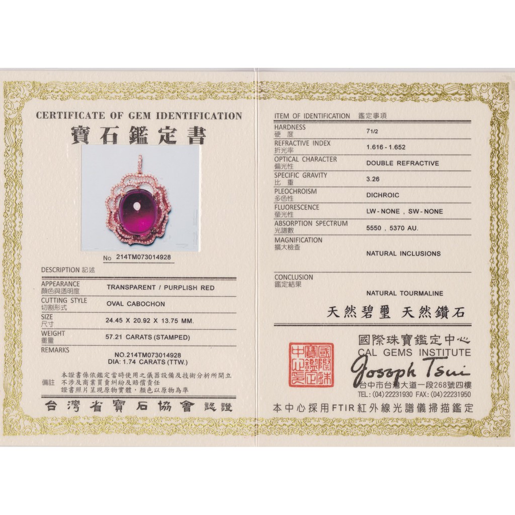 【久大御典品】天然碧璽墜 57.21克拉 配鑽201顆1.74CT 14K金 編號:H010714-1E