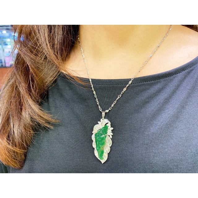 【久大御典品】天然翡翠墜 緬甸 A貨 18K金檯 附吳照明鑑定證書 商品編號:B45615-1