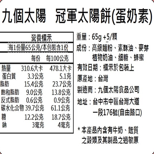 【九個太陽】獨家 - 優勝金太陽餅禮盒(蜂蜜口味)