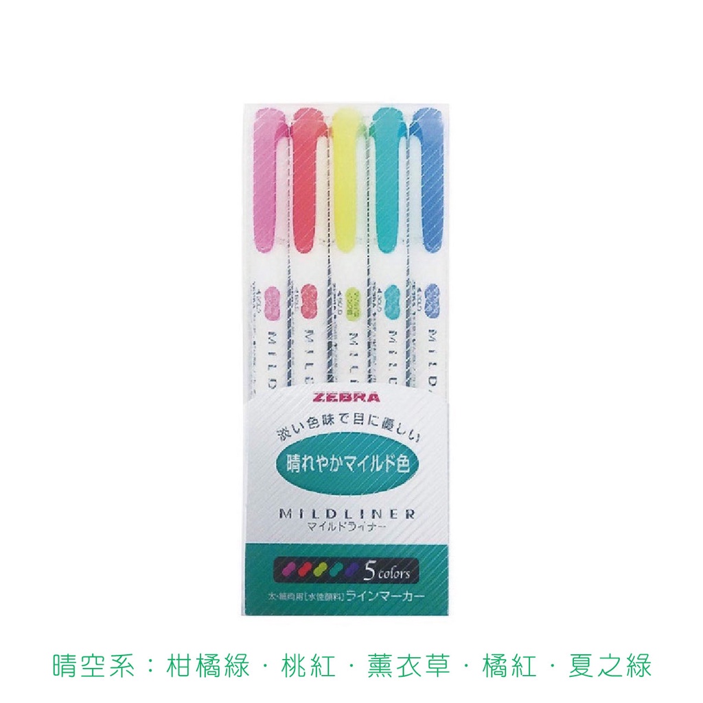 【二加一文具】斑馬 WKT7 MILDLINER雙頭柔性螢光筆(單支) 淡柔系 冷色系 和風系 親和系 晴空系(5入)