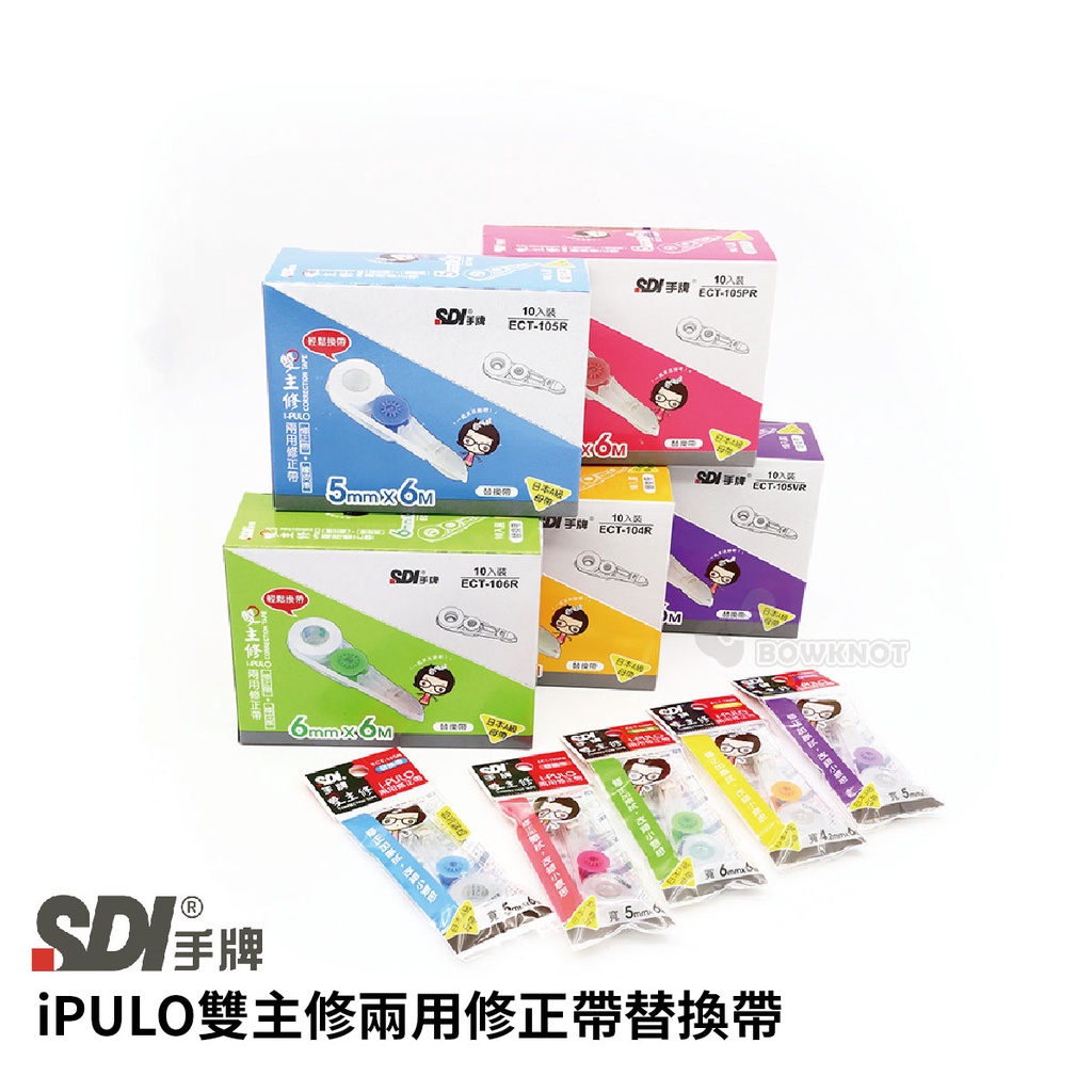 【二加一文具】SDI手牌 iPUSH輕鬆按CT修正帶替換帶系列、iPULO雙主修ECT兩用修正帶替換帶系列 10入/盒裝