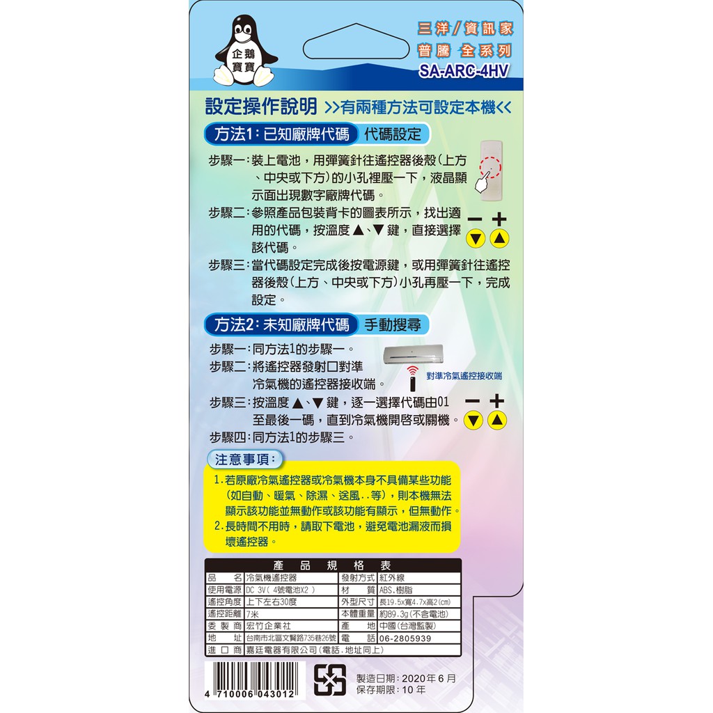 【企鵝寶寶】三洋-普騰-資訊家冷氣機遙控器 SA-ARC-4HV
