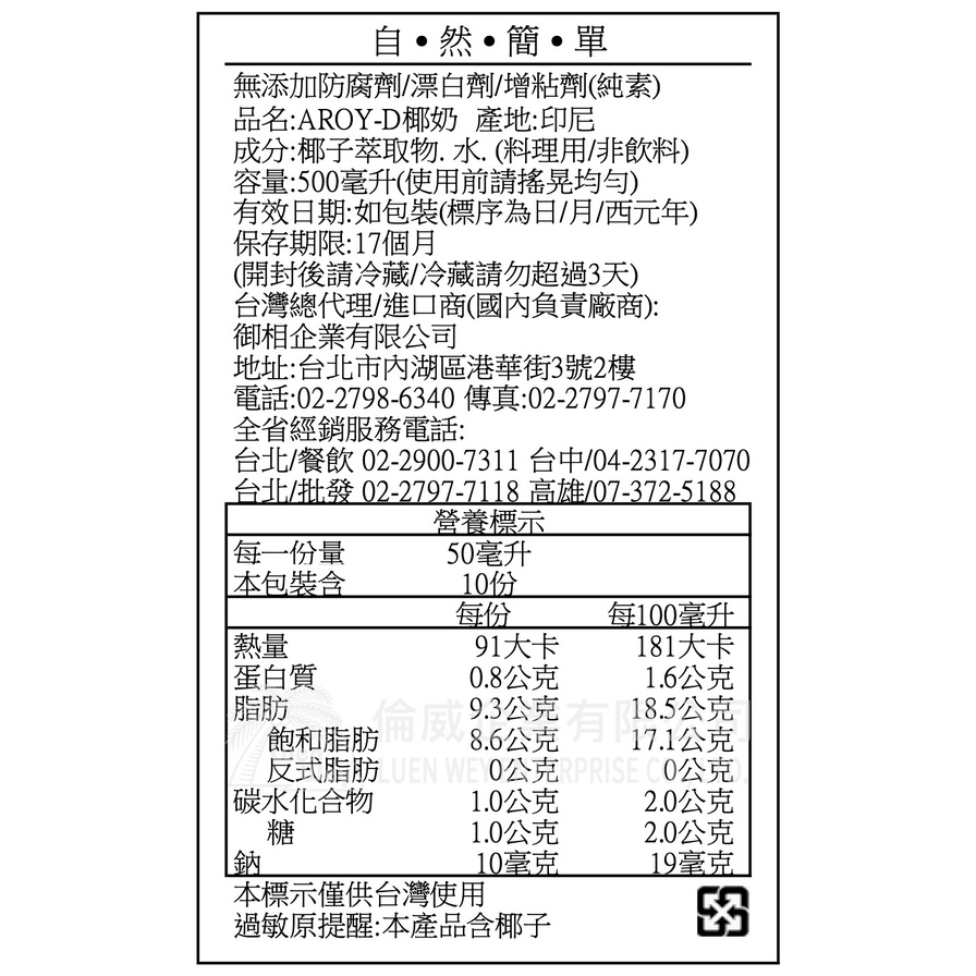 【倫威】泰國 AROY-D 椰漿 椰奶 鋁箔裝 250ml / 500ml / 1000ml