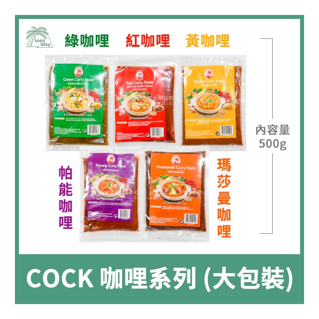 【倫威】泰國 COCK 公雞牌 雄雞牌 泰式咖哩 500g - 綠咖哩 / 紅咖哩 / 黃咖哩 / 帕能 / 瑪莎曼