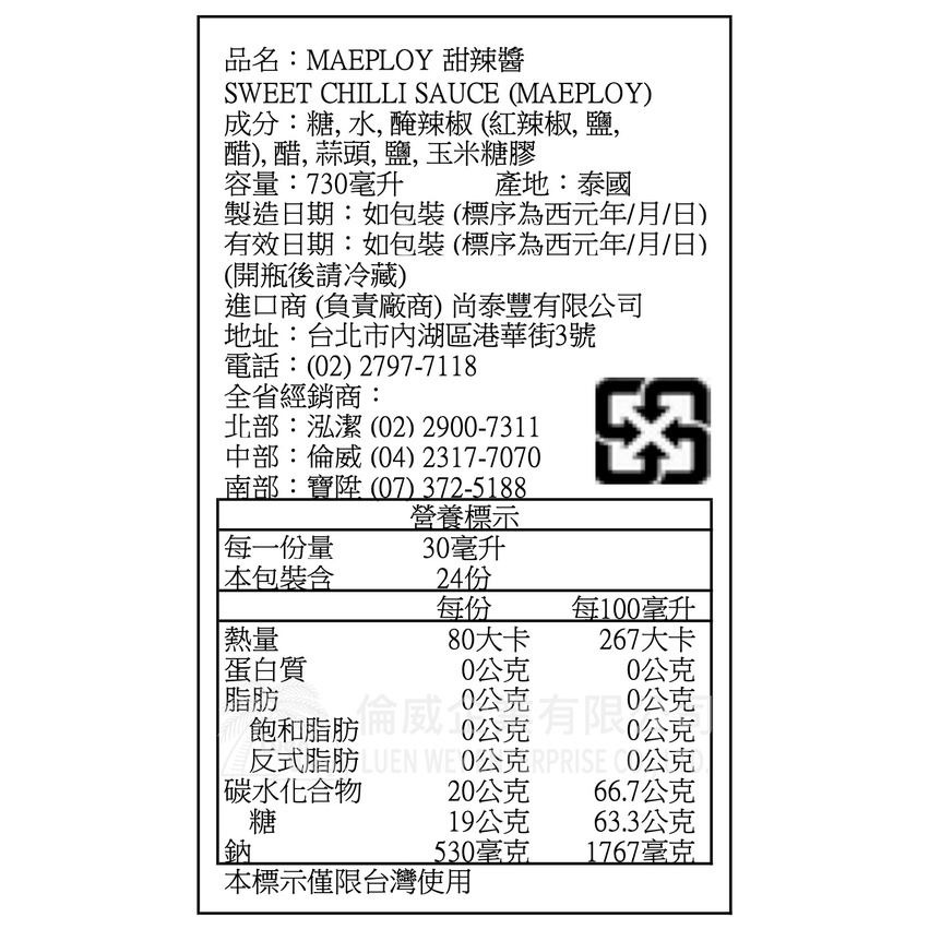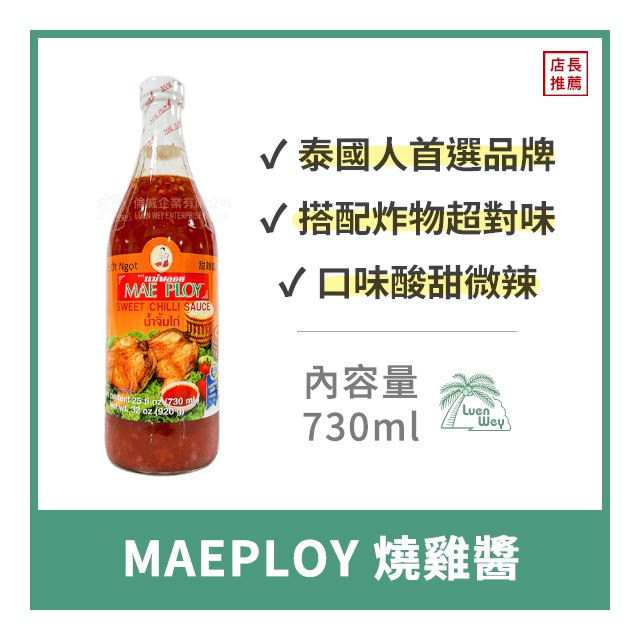 【倫威】泰國 MAE PLOY 燒雞醬 甜雞醬 泰式沾醬 月亮蝦餅沾醬 炸物沾醬 730ml