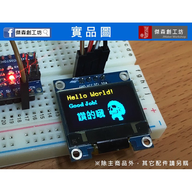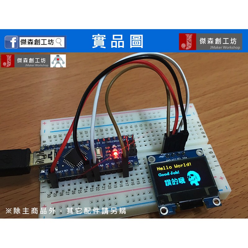 【傑森創工】0.96吋 OLED 128x64 低耗電 高解析 可顯示點陣圖 Arduino 送範例程式 大勝LCD