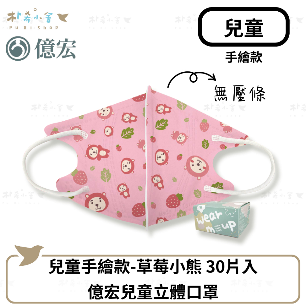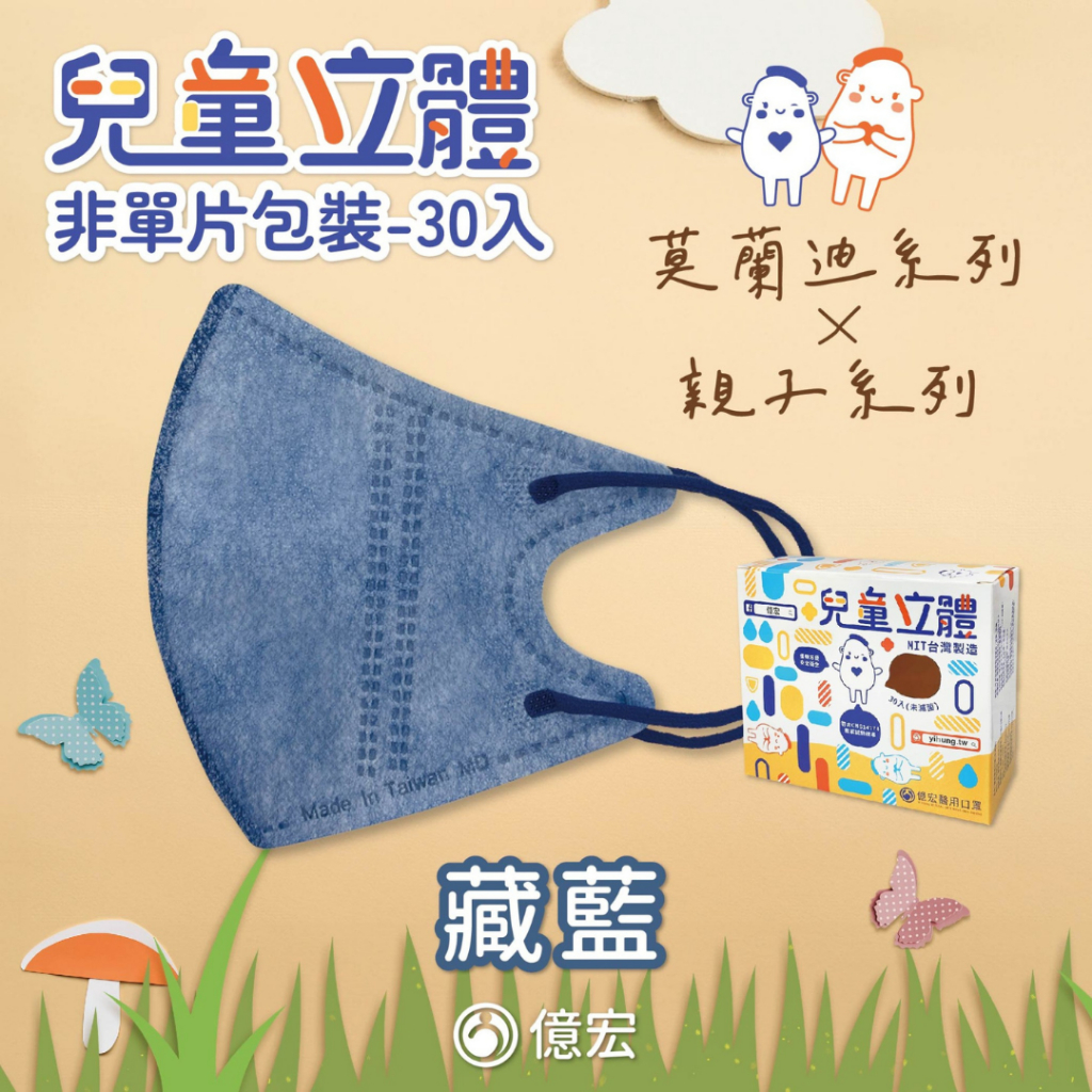 【億宏 兒童3D立體醫療口罩 30入/盒】 單片獨立包裝 手繪款 億宏口罩 3-11歲 台灣製 兒童口罩 幼幼立體口罩