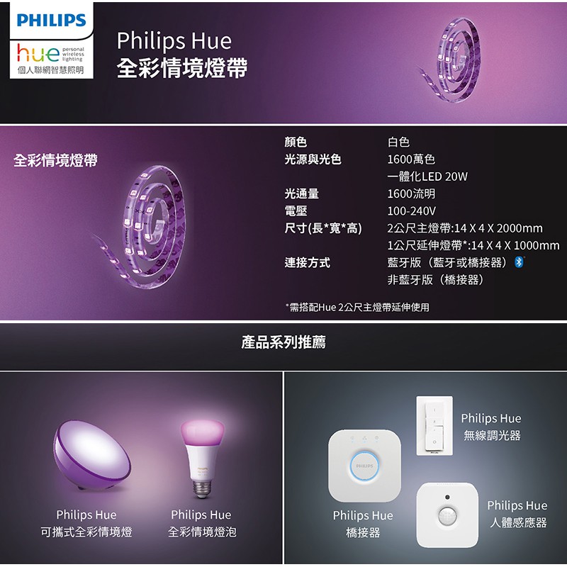 【優惠中】PHILIPS 飛利浦 Hue 智慧照明 藍芽版 全彩情境 LED彩色條燈 1米延伸燈帶 公司貨 PH009