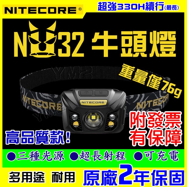【免運✅有保固✅開發票有保障】NITECORE NU32 NU33頭燈 CRI燈泡 USB充電頭燈 三光源 EDC