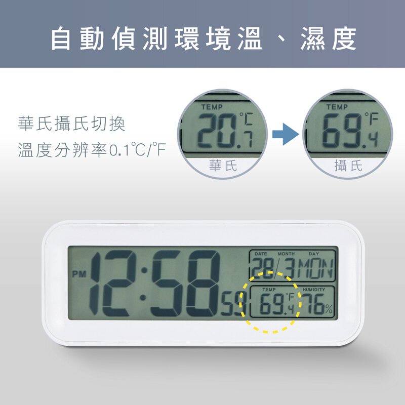 【免運➕電子發票】KINYO 簡約夜光LCD電子鐘【TD-535】秒顯大字幕 萬年曆溫濕度 5秒背光電子鐘 貪睡 鬧鐘
