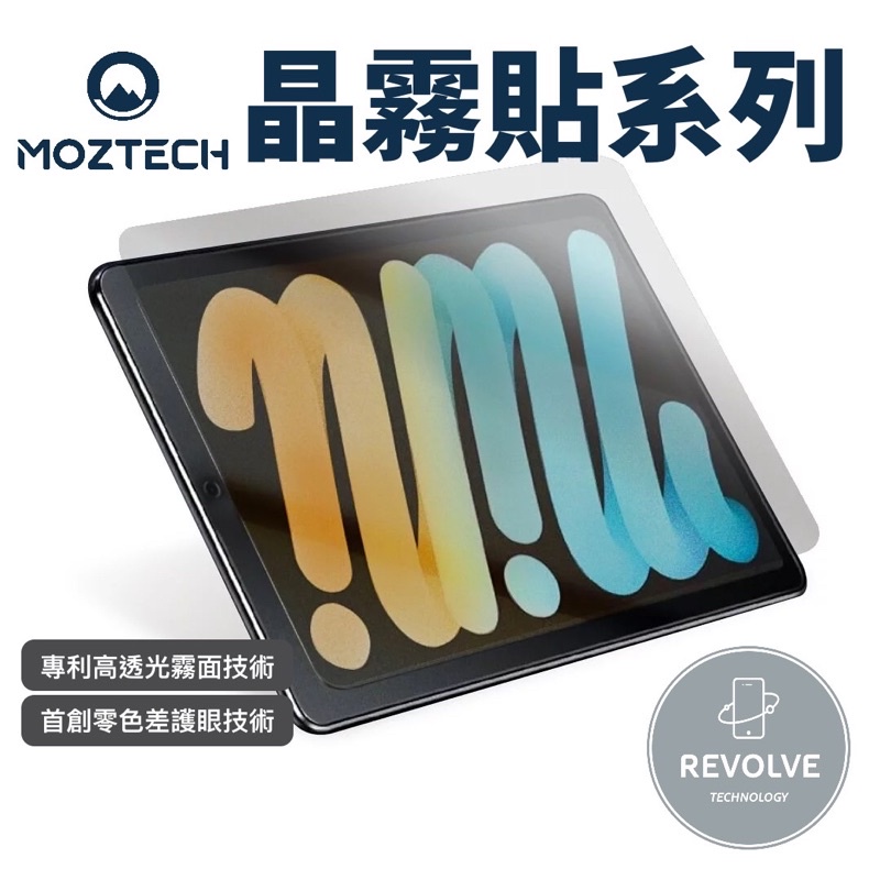 免運 MOZTECH 無色抗藍光晶霧貼 iPad mini 7 6 獨家專利 首創 超細霧 電競 抗藍光 玻璃 保護貼