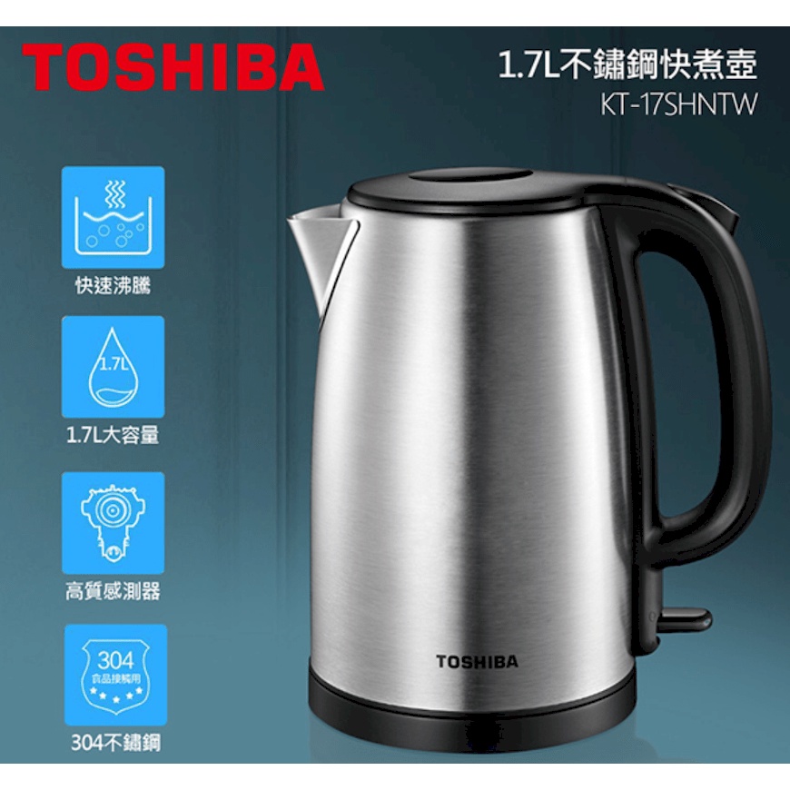 【免運-台灣現貨】【TOSHIBA】1.7L不鏽鋼快煮壺 (KT-17SHNTW) 電煮壺 煮水壺 電熱壺 電茶壺