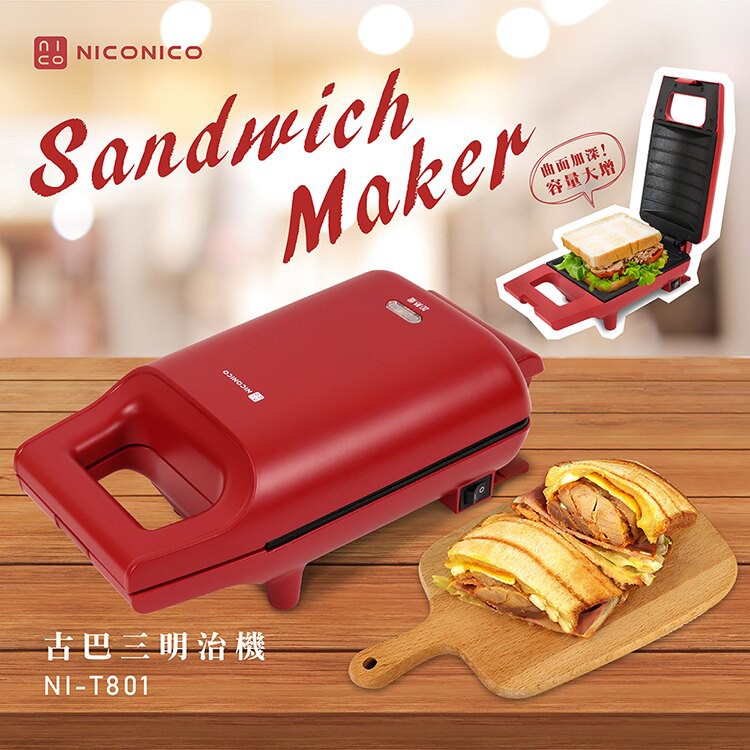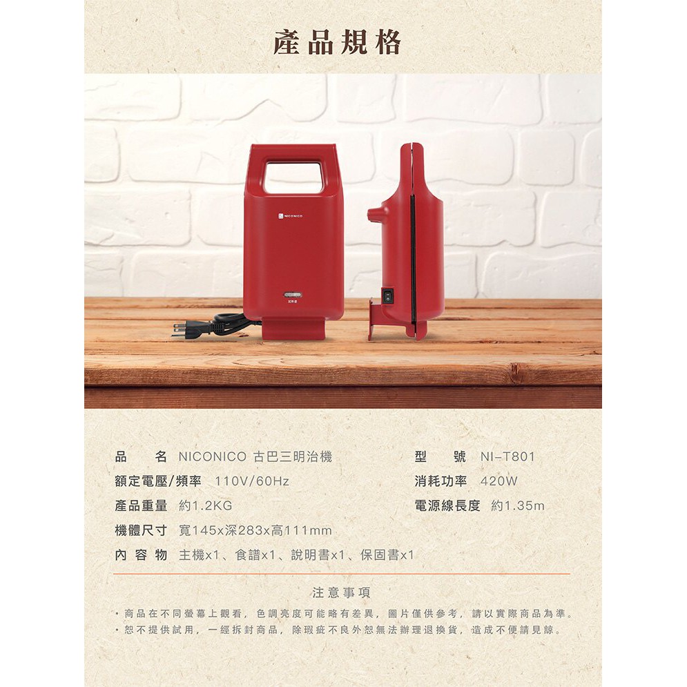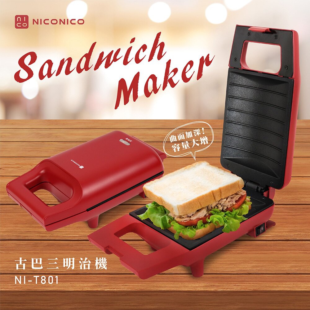 【全新原廠公司貨附發票】【NICONICO】NI-T801古巴三明治機 熱壓土司機 帕尼尼機