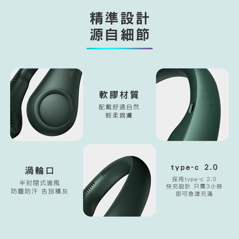 【几素 JISULIFE】FA12/FA14 無葉片靜音輕量頸掛風扇 (4000MAH 大電量 不纏髮安全設計)專利授權