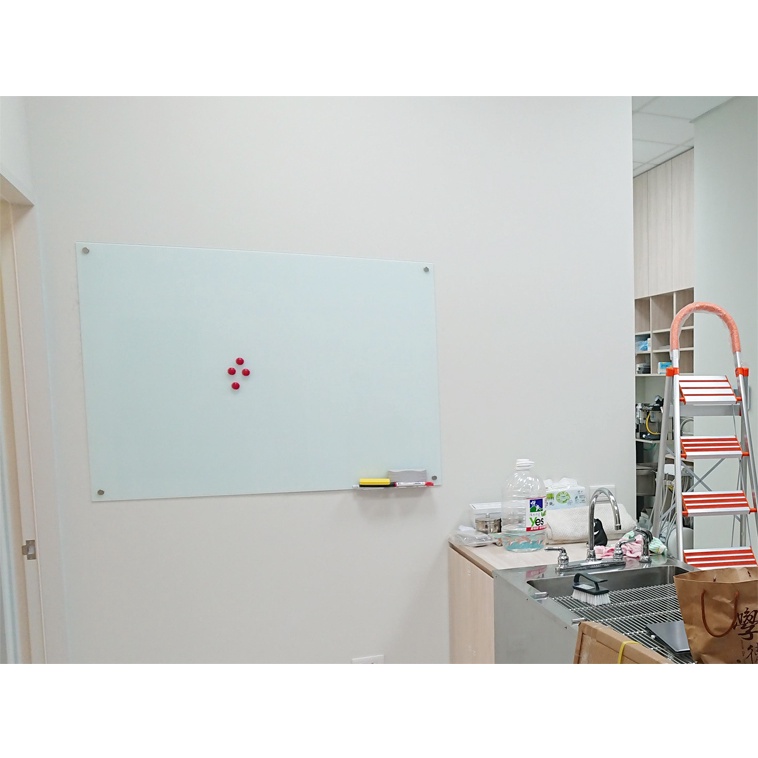 【利多文具】磁吸烤漆強化玻璃白板(含板擦.25CM筆槽.筆.強力磁鐵)寄送不安裝(外島運費另計)