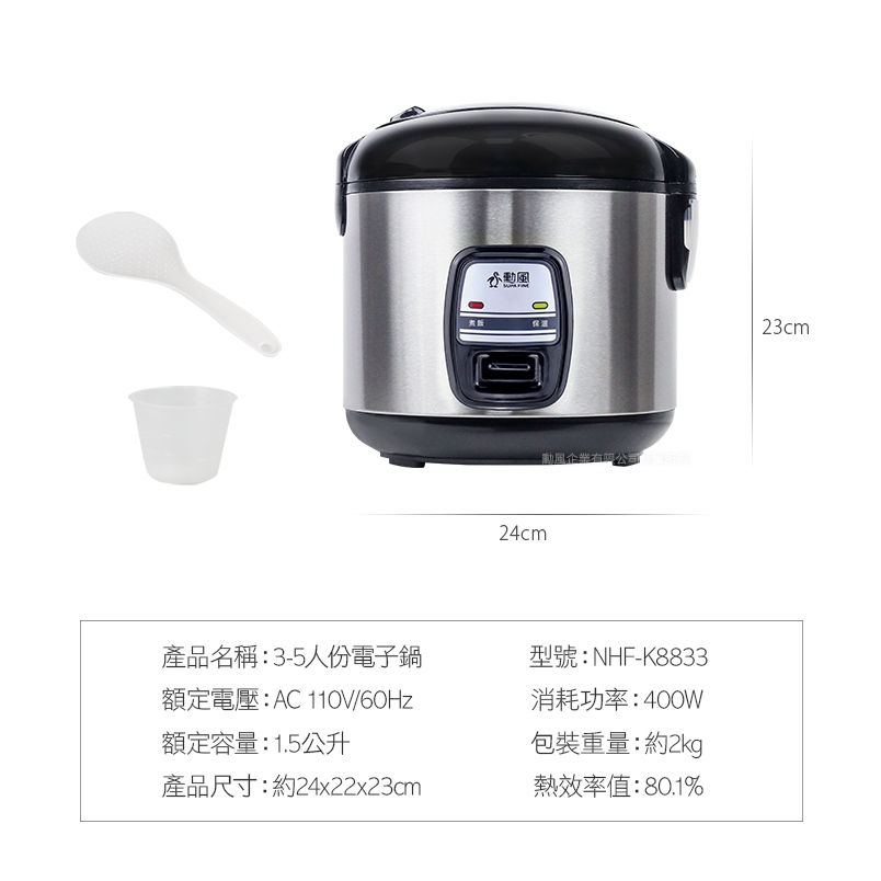 【勳風】3-5人份電子鍋 不沾塗層 NHF-K8833 可拆式集水盒 不沾塗層電鍋 電鍋