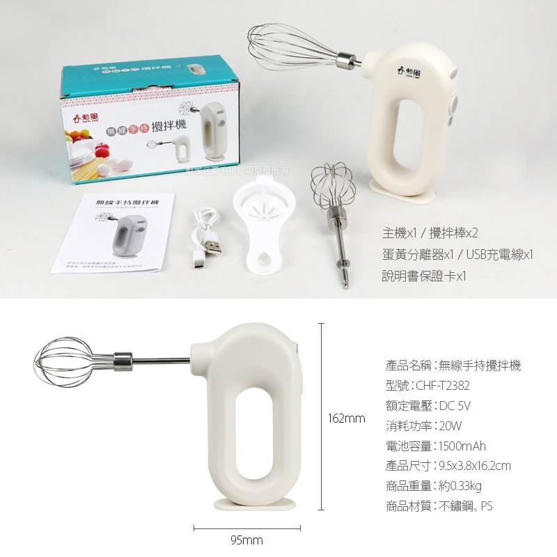 【勳風】★福利品出清★ USB無線手持攪拌機 CHF-T2382 可打麵糊 蛋液 蛋白霜 蛋糕 甜點 烘培 料理好幫手