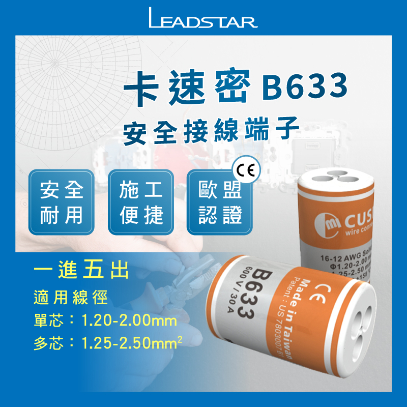 【卡速密】電線連接器 接線端子 快速接頭 IP68 防塵防水 1進5出 燈具可用 B633