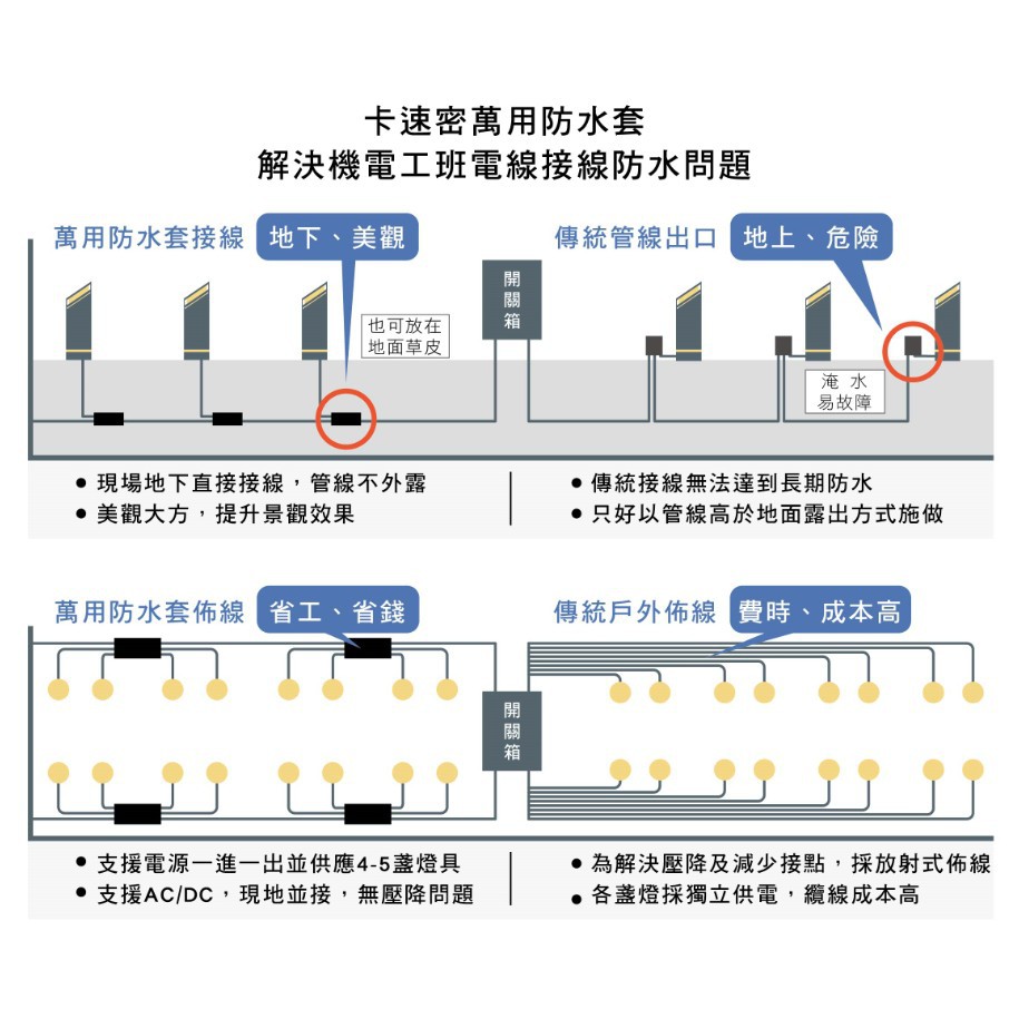 【卡速密WP844萬用防水套】埋地 防水接線 LED燈具 電線連接器 接線端子 戶外接線 景觀燈 外牆燈 園藝造景