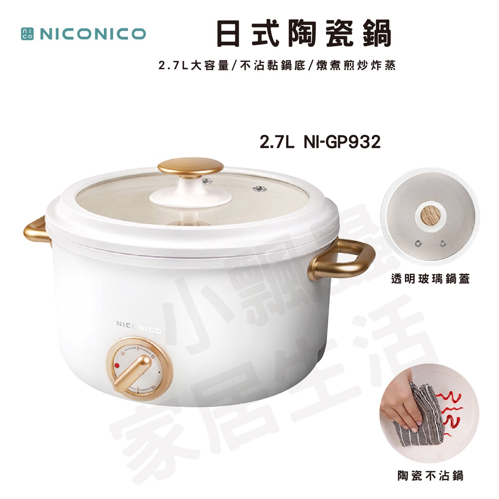 【原廠公司貨】NICONICO 2.7L 日式 美型陶瓷料理鍋 電火鍋 不沾鍋 快煮鍋 料理鍋 NI-GP932