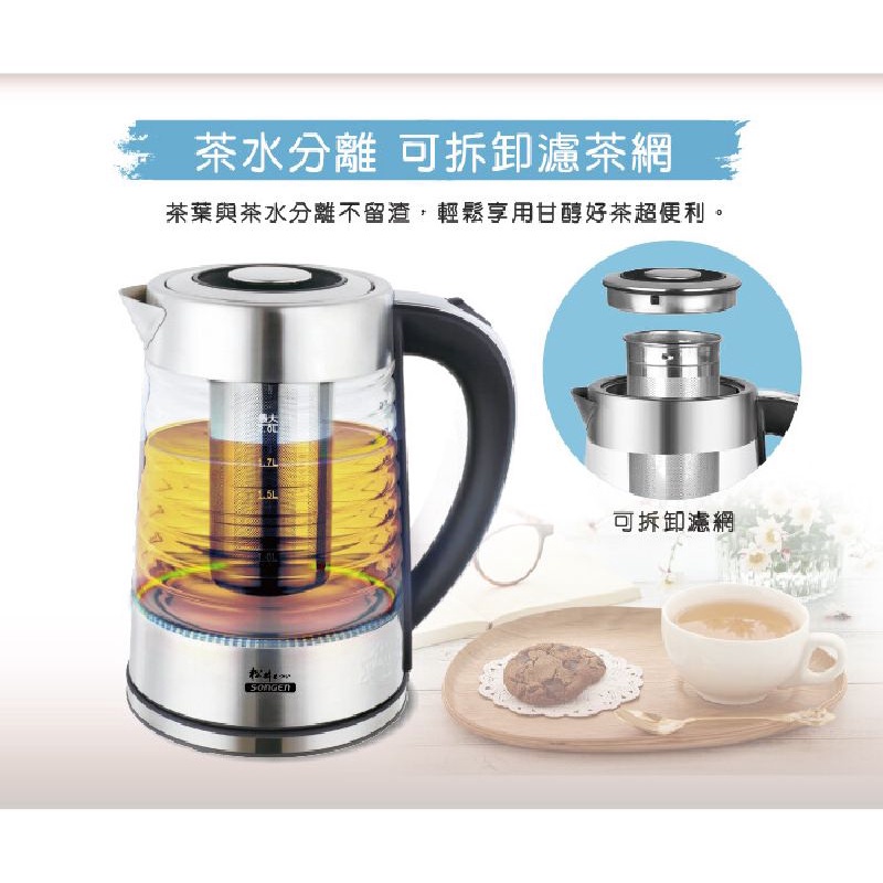 【原廠現貨免運】日本SONGEN 松井まつい濾茶炫光玻璃 快煮壺/電水壺/泡茶機 (SG-722 波浪壺身款)