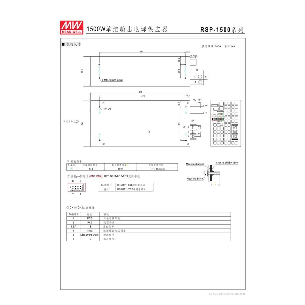 【原廠貨附發票】RSP-1500-12 1500W 12V 125A 明緯 MW 電源供應器~全方位電料