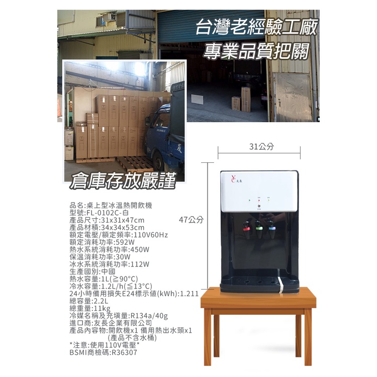 【友長】桌上型冰溫熱開飲機-白(FL-0102C) 友長網路獨家授權 一年原廠保固