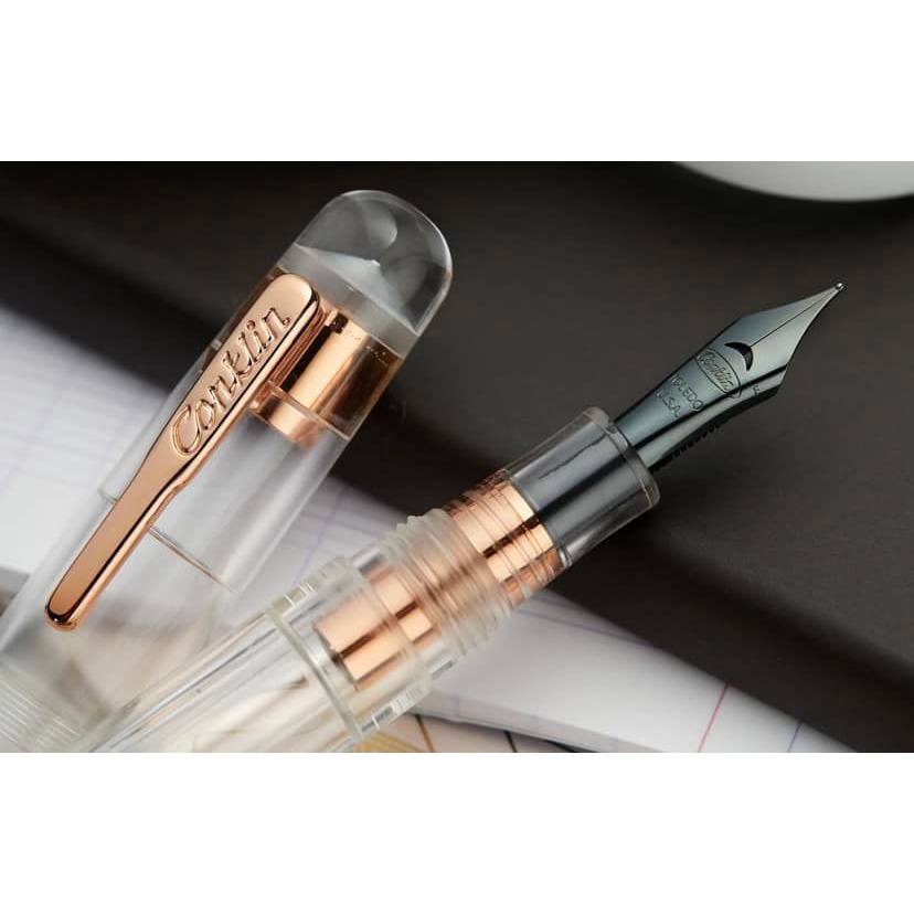 【古今鋼筆】Conklin 康其年 Duraflex/ ALL AMERICAN 玫瑰金 Demo 三用 透明示範 鋼筆