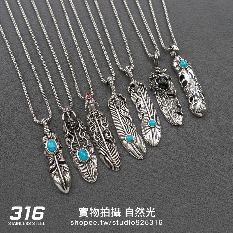【台北現貨】鈦鋼項鍊 Goro's 高橋吾郎風格 印第安 鈦鋼羽毛 吊飾項鍊