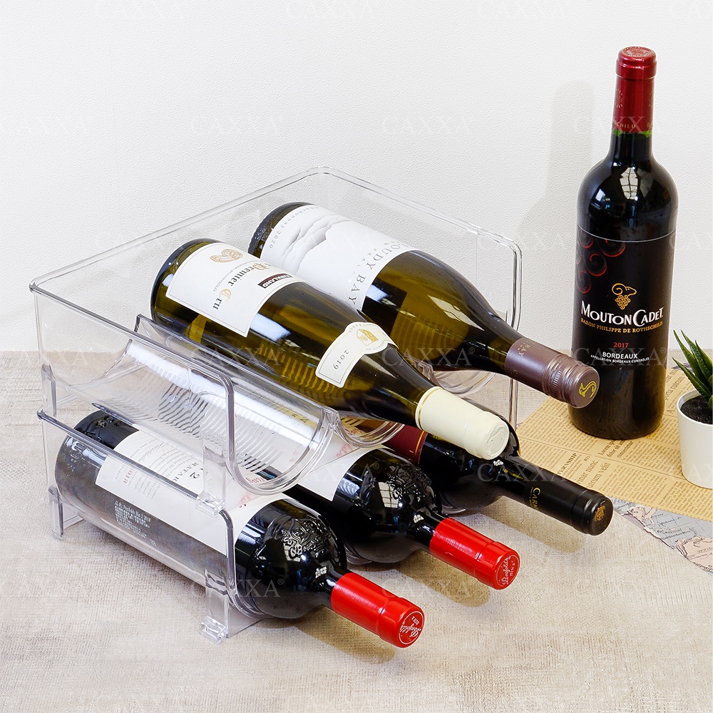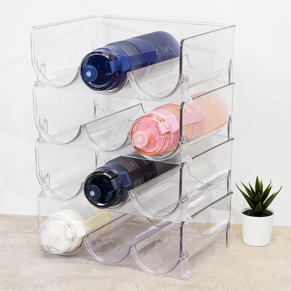 【台灣公司現貨】3格可疊透明水瓶收納架 1入 (紅白酒架/玻璃瓶架/水壺收納/冰箱收納架)
