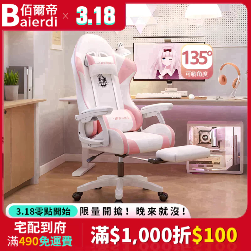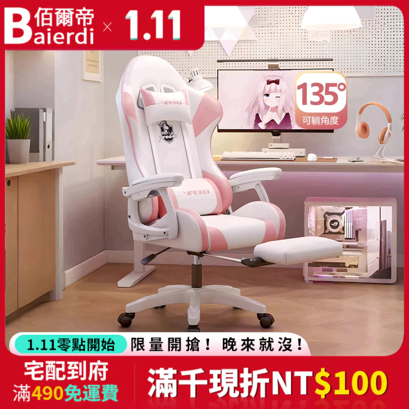 【台灣現貨🔥】BAIERDI 元氣電競直播椅 高顏值設計電腦椅 辦公椅 人體工學椅 135°可後躺 聯動扶手 乳膠坐墊