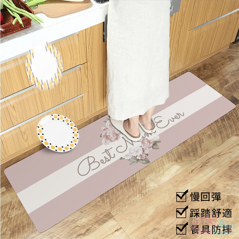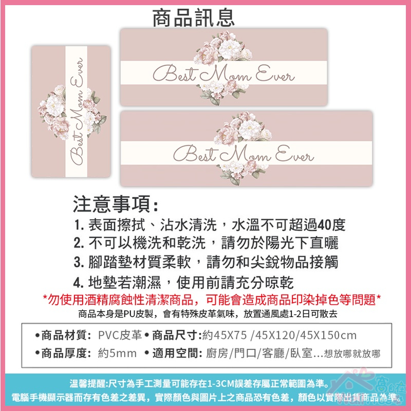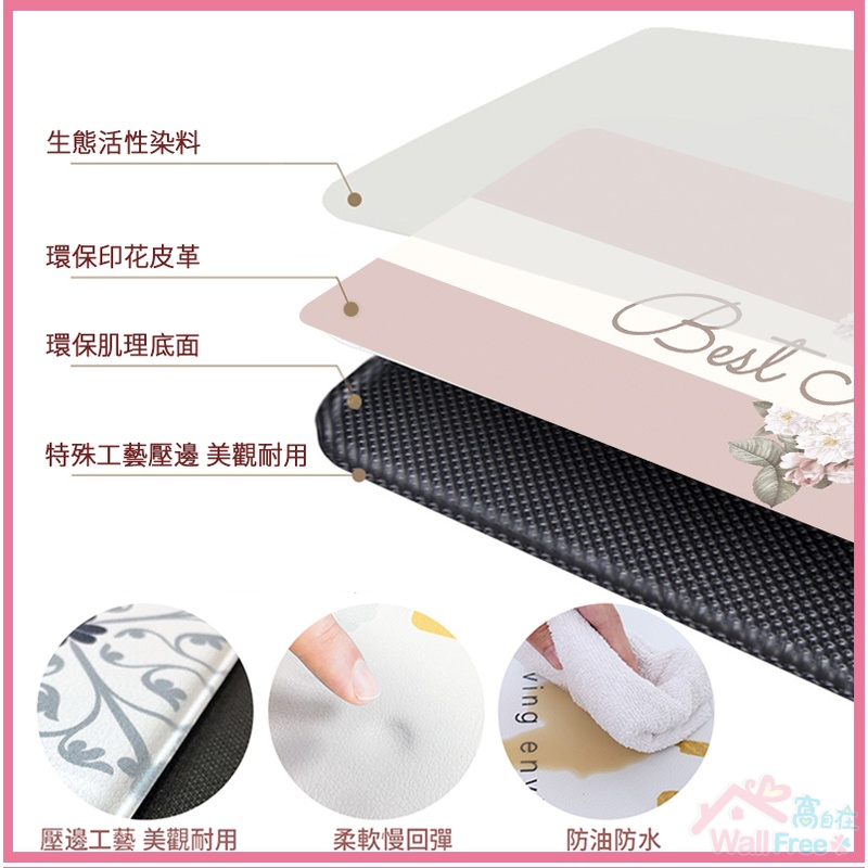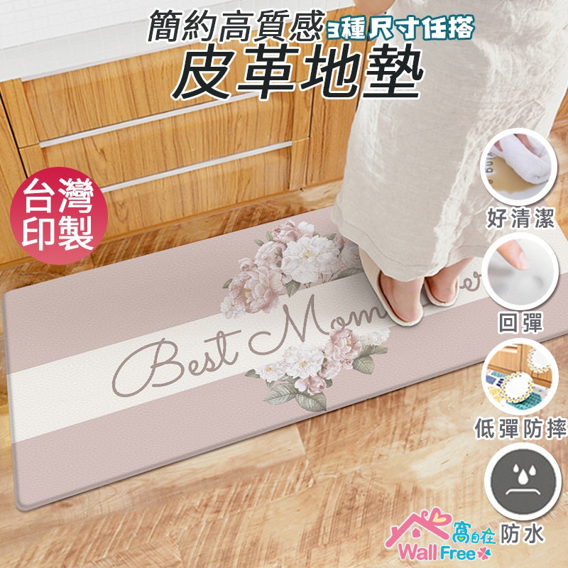 【台灣印製】摩卡花束 防水防油踏墊 皮革地墊 客廳茶几臥室床邊廚房門口 L型 長條 地墊踏墊腳踏墊地毯 窩自在