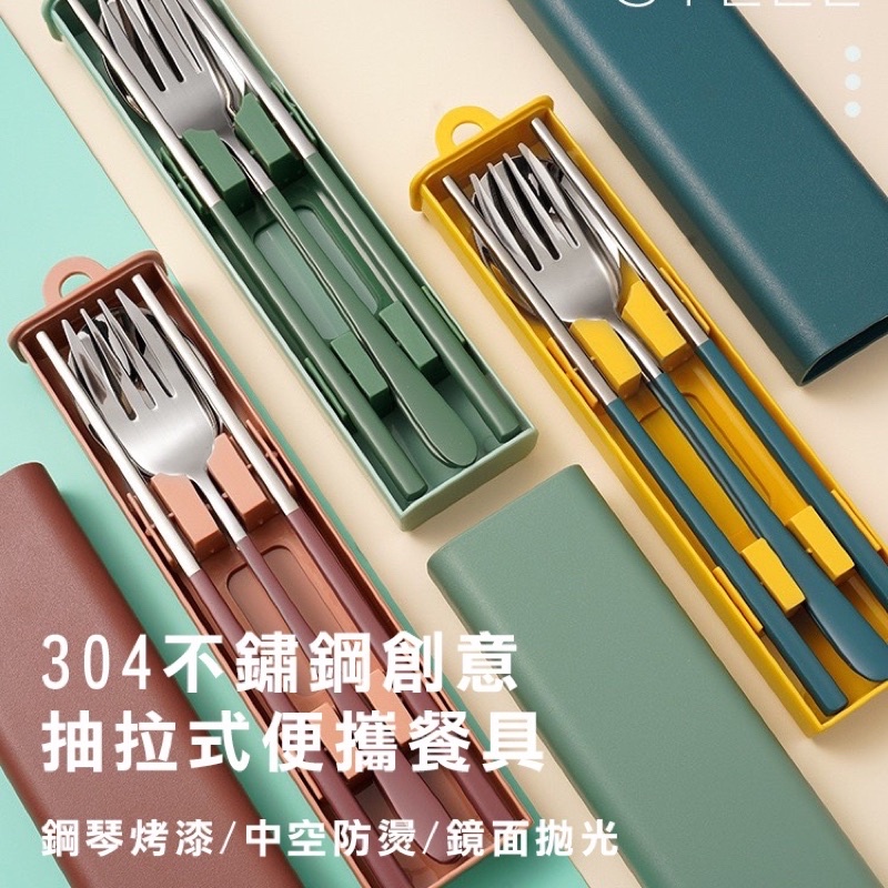 【台灣快速出貨】304不鏽鋼餐具組 隨身攜帶餐具組 旅行餐具組 抽拉設計 密封防塵 穩固 簡約 現貨 湯匙