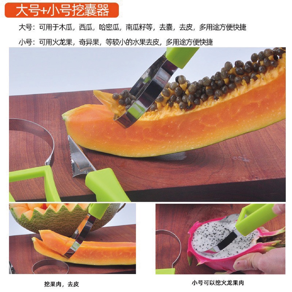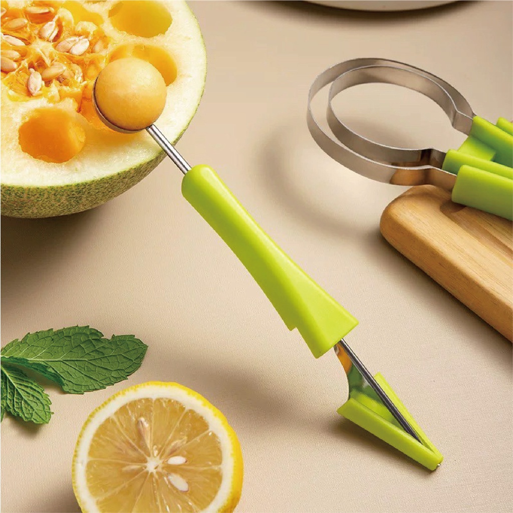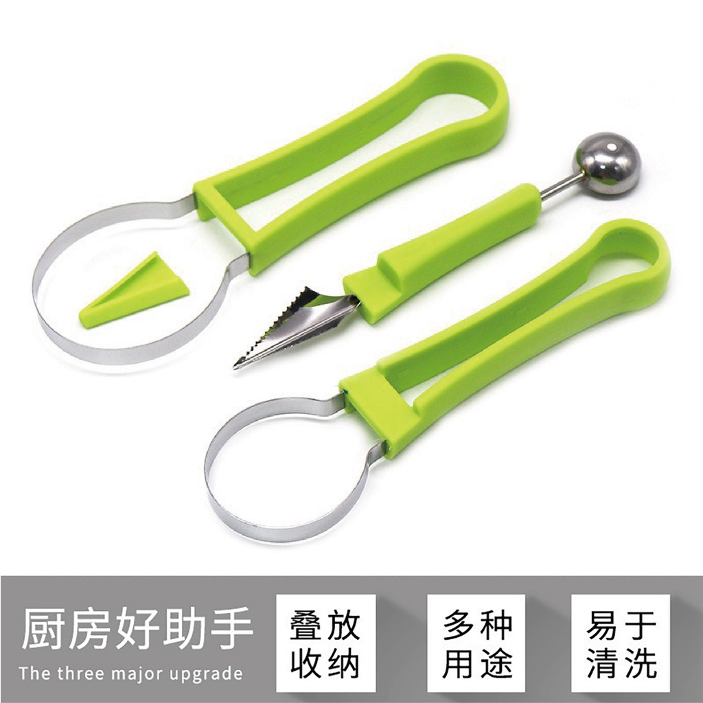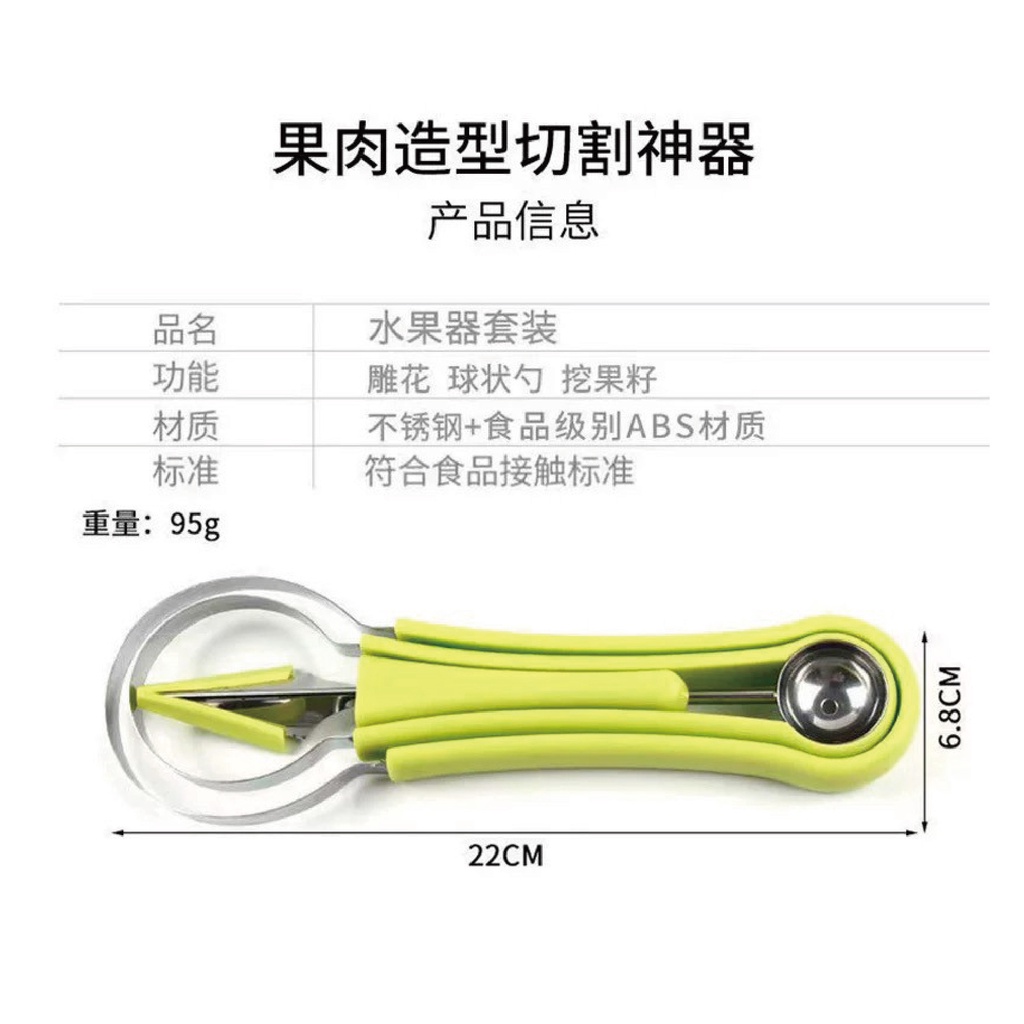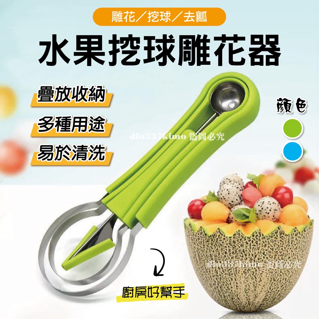 【台灣現貨】三合一水果挖球器 水果球挖勺 挖球器 哈密瓜取瓤器 西瓜挖球勺 水果去皮取肉雕花神器 削皮器 挖球勺