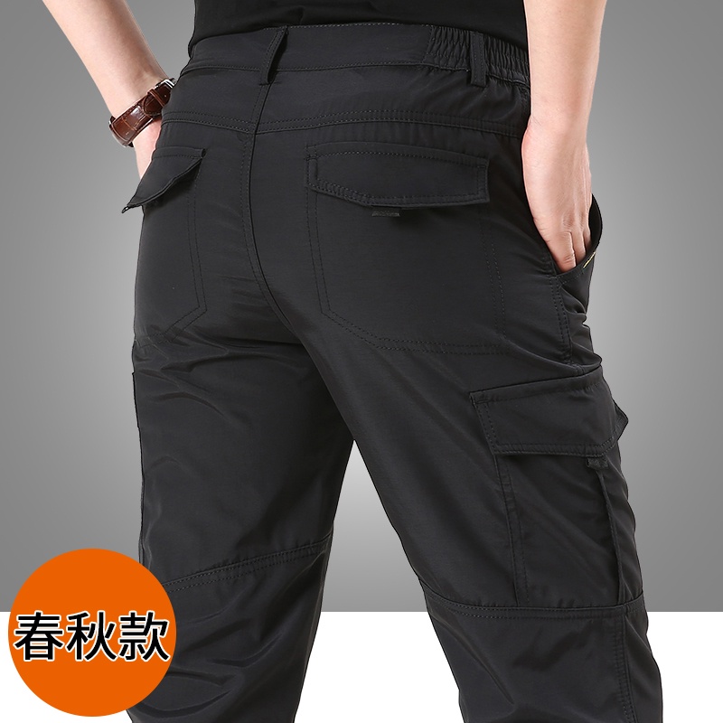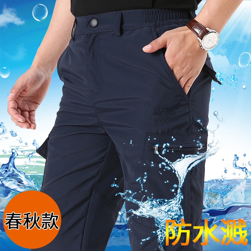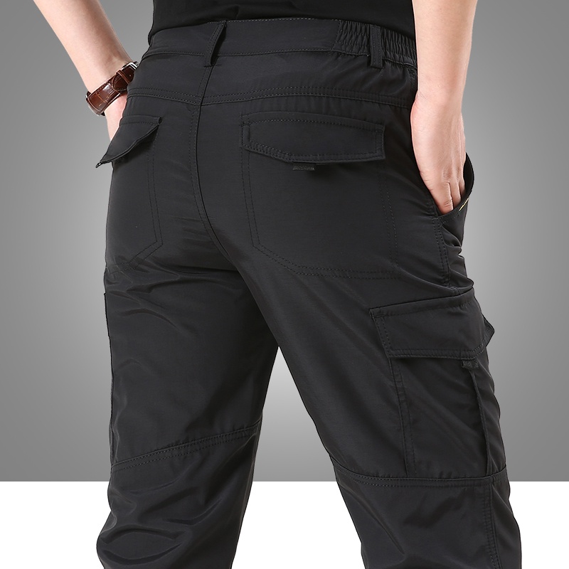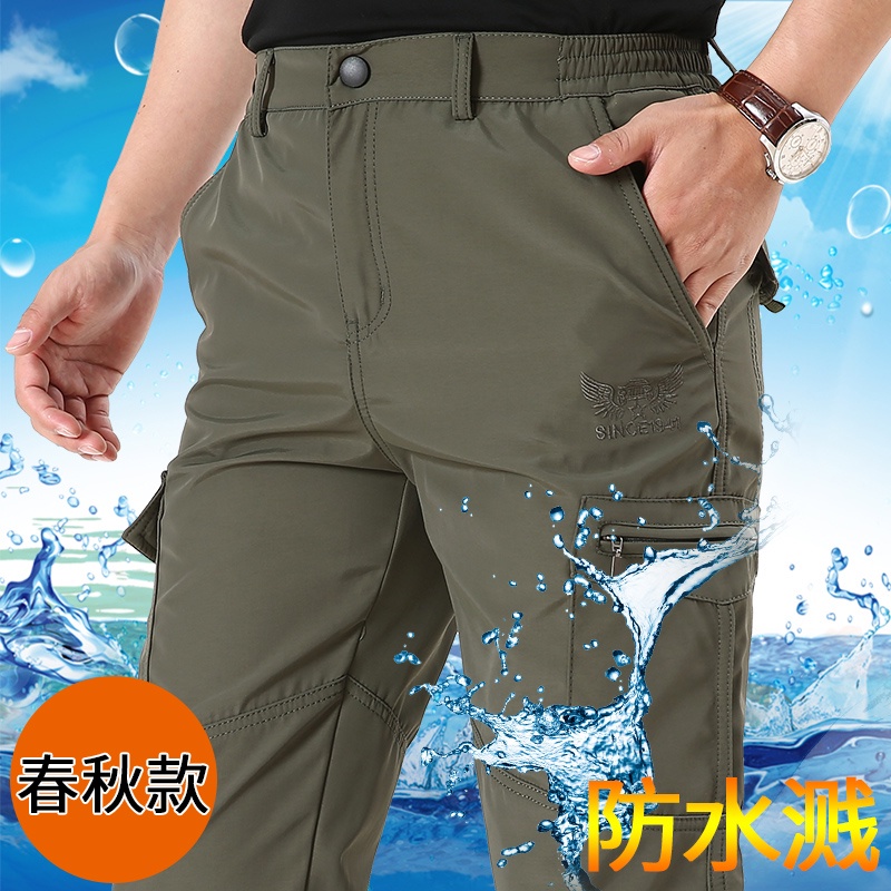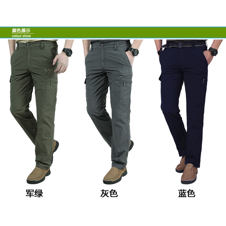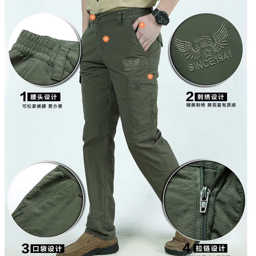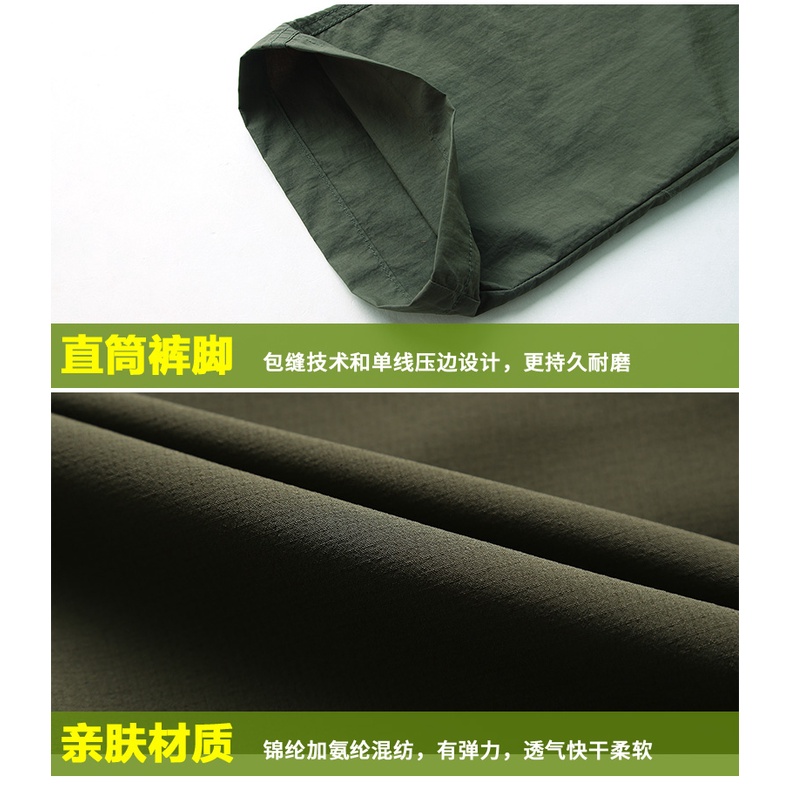 【台灣現貨】夏季戶外薄款多口袋工裝直筒長褲 速乾褲 登山褲 休閒長褲 男寬鬆工作褲 多口袋工作長褲 防水機能衝鋒褲 軍褲