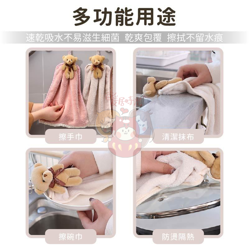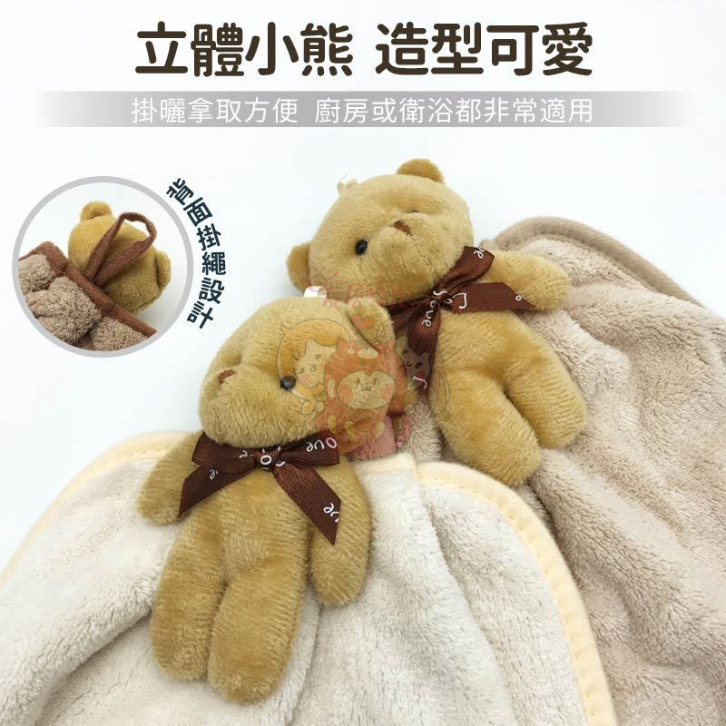 【台灣現貨】小熊擦手巾|珊瑚絨吸水擦手巾|廚房清潔抹布|多功能柔軟家居必備可掛式擦手巾