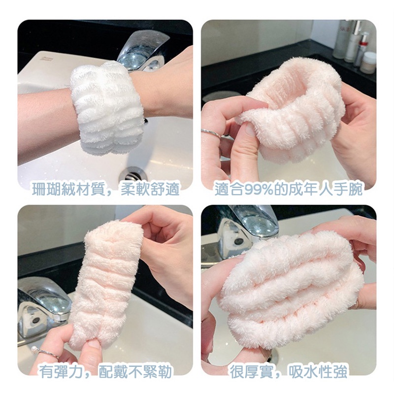 【台灣現貨】洗臉手腕帶 珊瑚絨手腕帶 腕帶 吸水 擦汗 防濺水手腕帶 洗臉神器 髮帶 髮圈