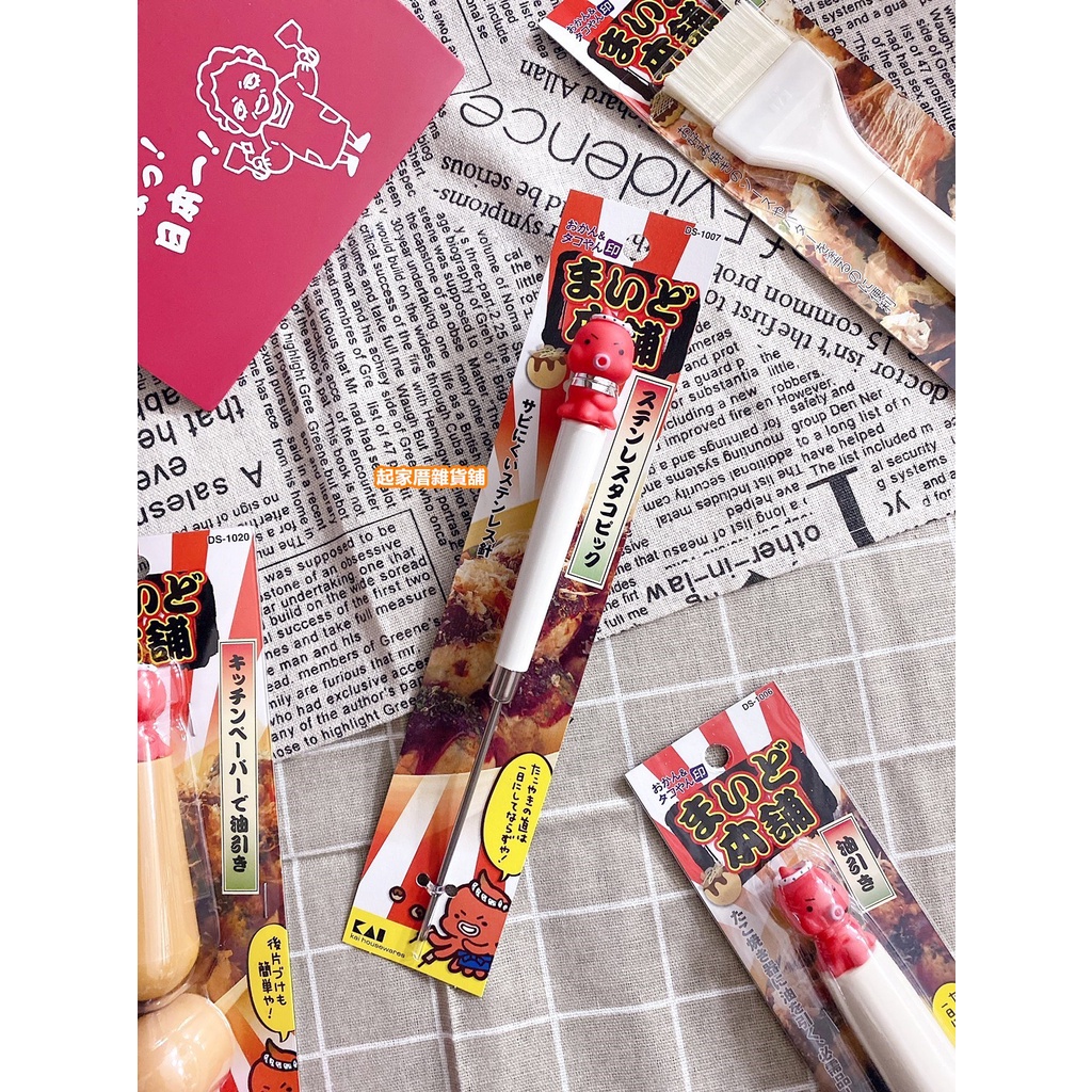 【台灣現貨】章魚燒配件🐙全系列 日本貝印KAI 章魚燒麵糊拌料組 挑棒 油刷 刷子 抹油器 清潔棒 章魚造型【起家厝】