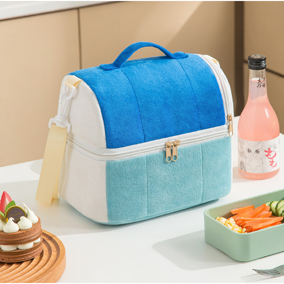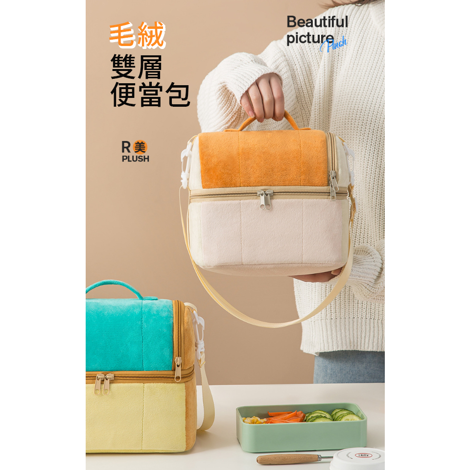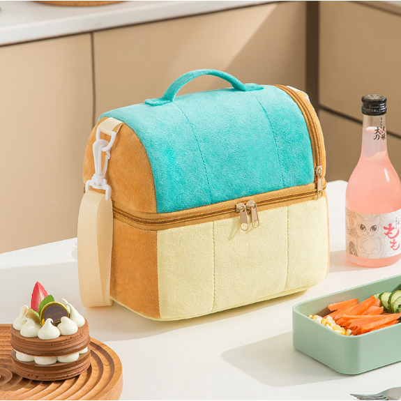【台灣現貨】雙層便當袋 保溫袋 保溫包 可愛便當袋 可愛吐司造型毛絨