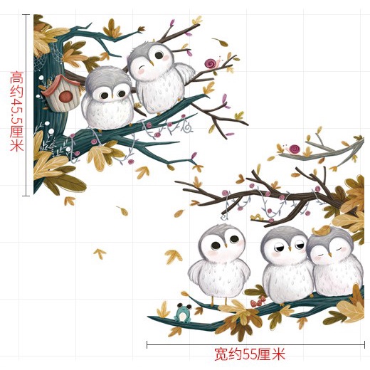 【台灣現貨壁貼】闆闆推薦🔥 | 可愛貓頭鷹- 自黏壁貼 壁貼 壁紙 防水 無痕壁貼 ins 網美裝飾 幼稚園 教室布置