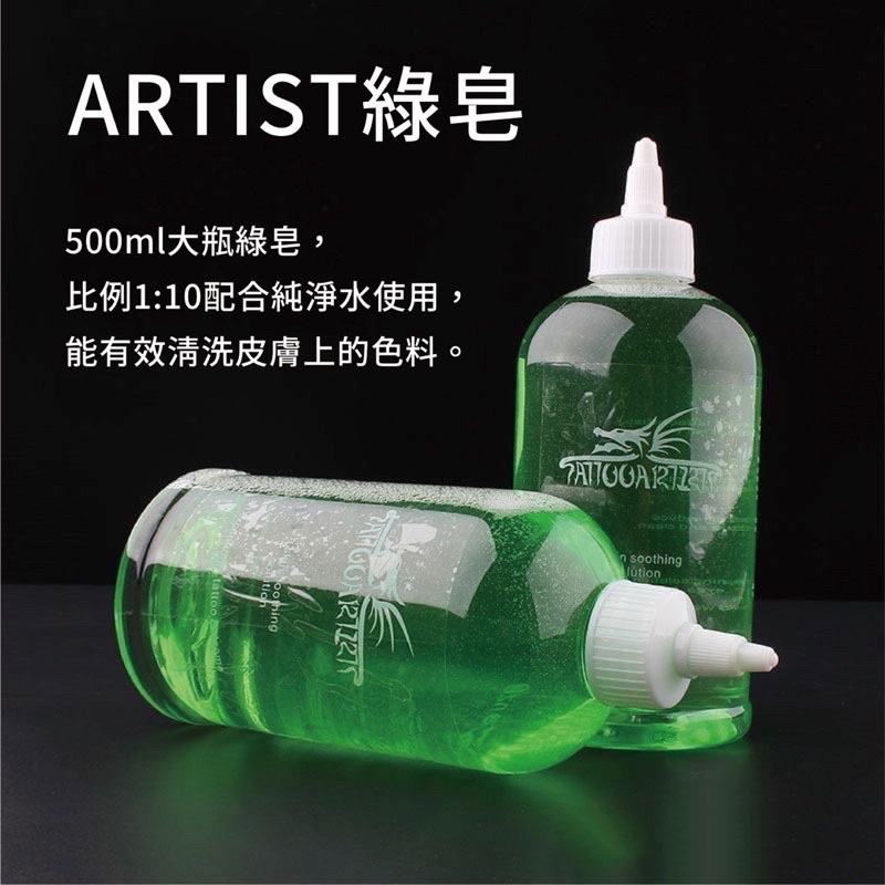 【台灣現貨快速出貨】ARTIST綠皂紋身清潔液500ml/大瓶濃縮綠藻/綠皂原液/紋身紋繡輔助清潔用品/紋身皮膚清潔綠藻