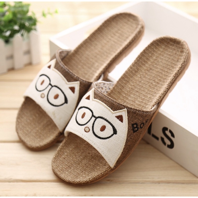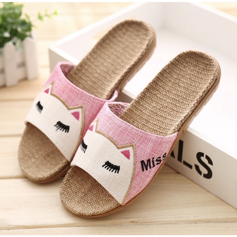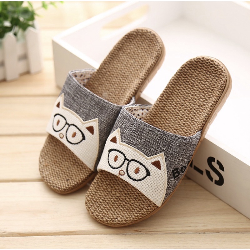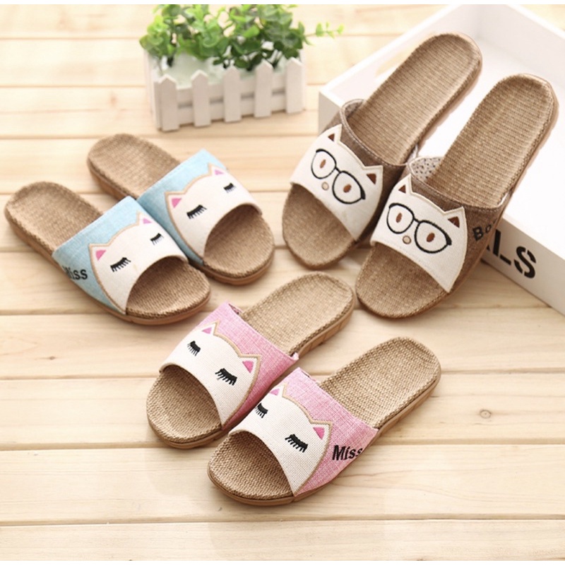 【台灣現貨速發】 貓咪頭亞麻拖鞋 夏季拖鞋 男女居家拖鞋 涼感拖鞋 可愛拖鞋 吸汗 不腳臭 不悶腳