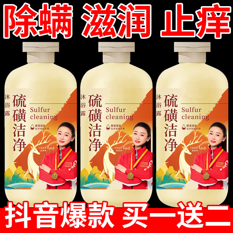 【台灣發售】沐浴乳 沐浴露 國貨硫磺沐浴露液體皂除蟎止癢控油去背痘去鷄皮專用護膚抖音衕款