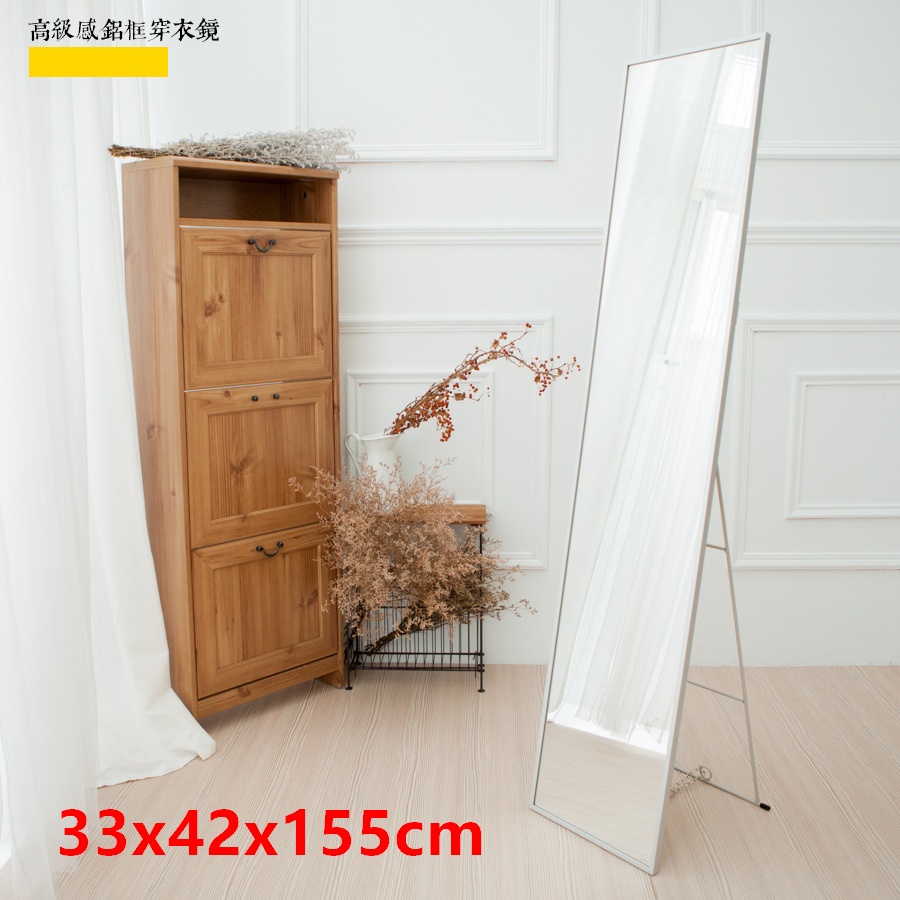 【台灣製 鋁框穿衣鏡】全身鏡 穿衣鏡 掛鏡 立鏡 自拍鏡 木質背板33x42x155