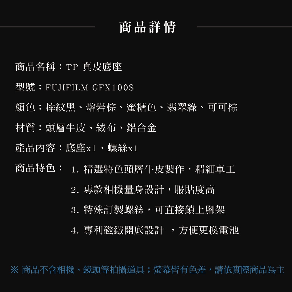 【台灣TP】 適用於 FUJIFILM GFX100S / GFX50SII / GFX100SII 真皮底座 快拆電池