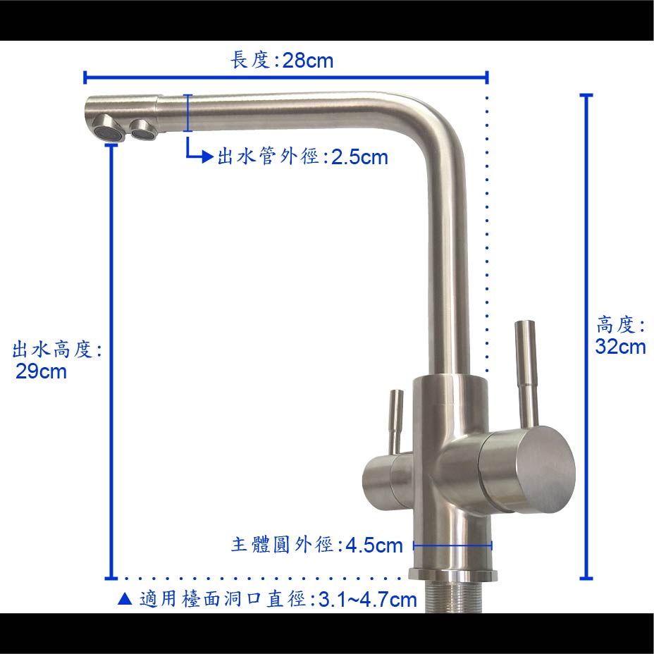 【台製】304不鏽鋼三用RO龍頭 304 不鏽鋼 水龍頭 三用 RO 無鉛 龍頭 問號 水管 冷熱 鵝頸 台面 廚房