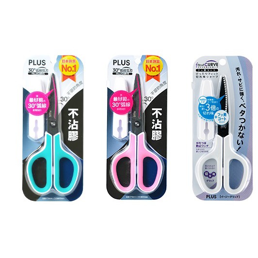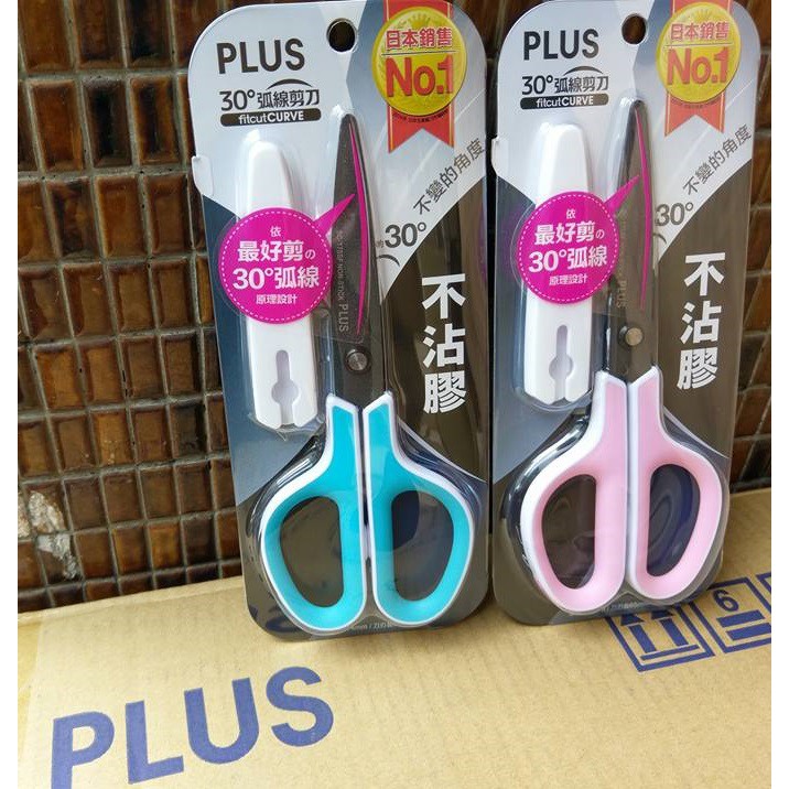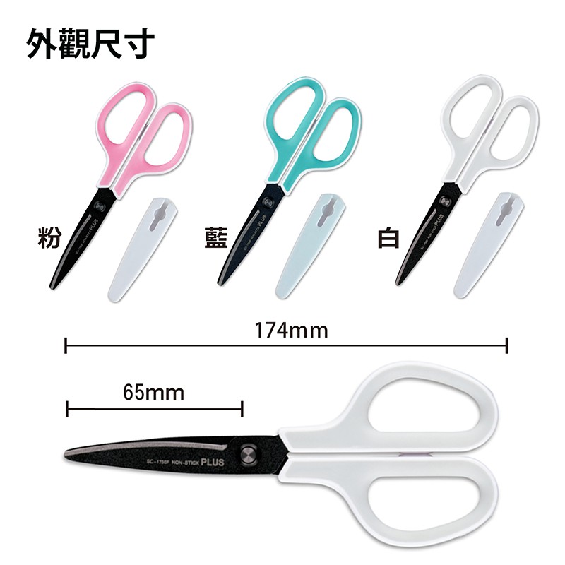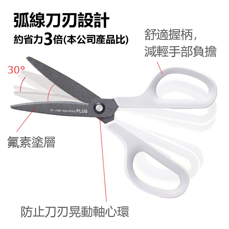 【含稅附發票】現貨/不沾膠/不黏膠/弧線/30度/安全/附蓋剪刀SC-175SF文具批發PLUS普樂士